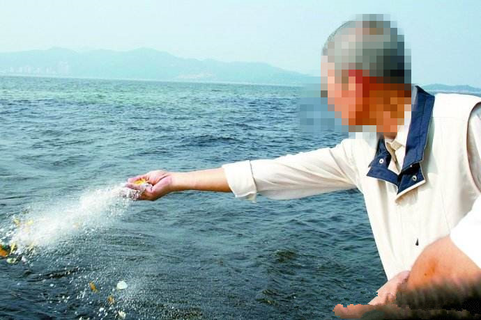(3)丧家陆续将拌有鲜花的骨灰撒向大海